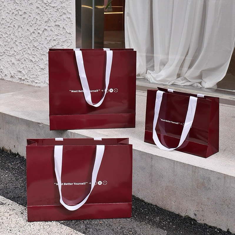 Custom angola red Paper shopping bags with white ribbon Custom angola red Paper shopping bags with white ribbon