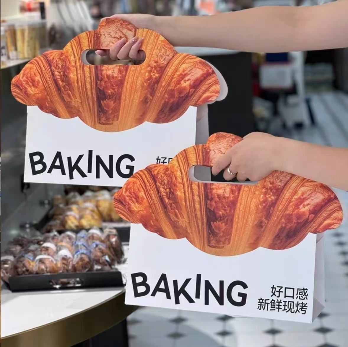 Custom Bread Dessert Baking Paper Bag Custom Logo Toast Bottom Die Cut Handle Bag