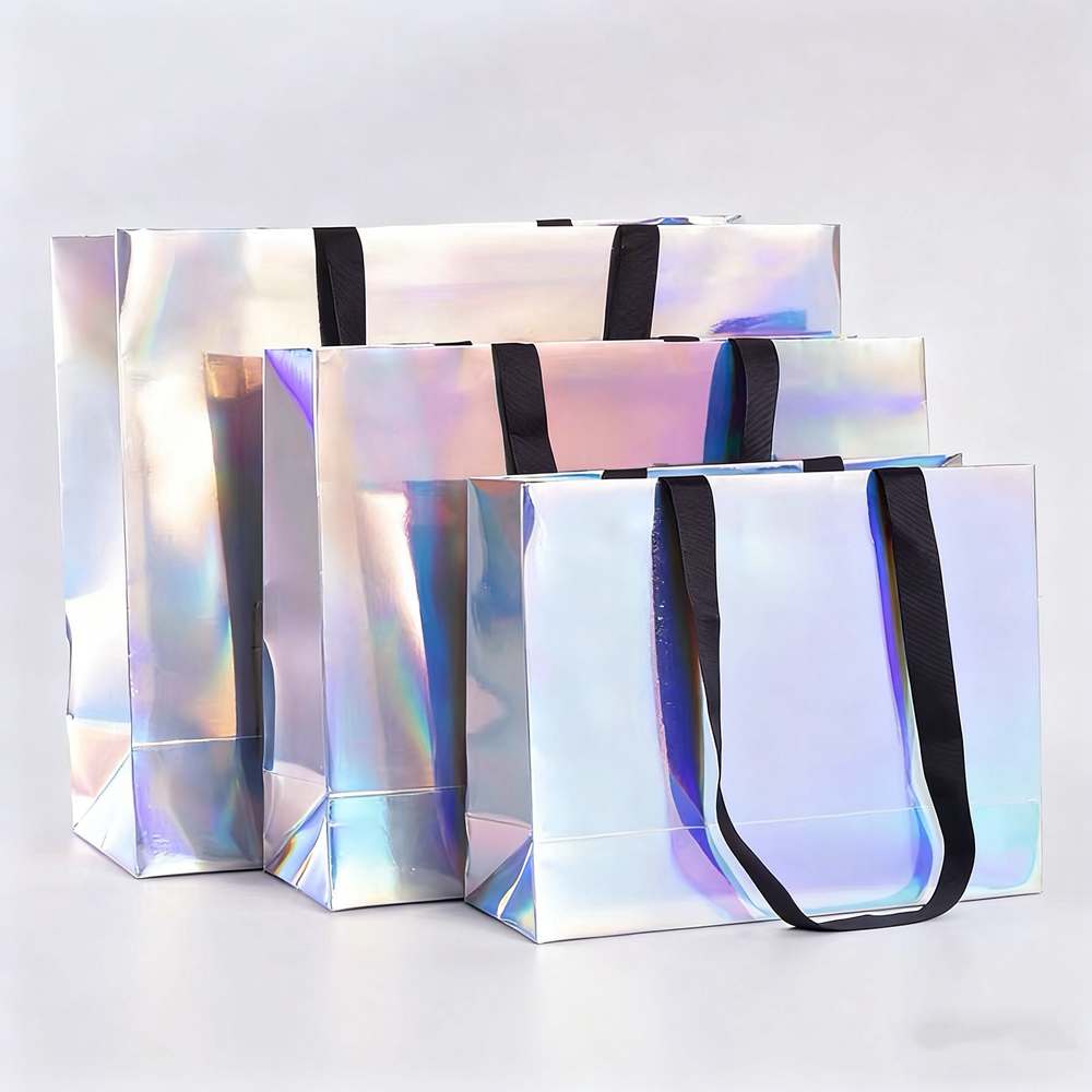 Custom High-end laser gradient paper bag thickened handbag packaging clothing store large gift shopping bag Custom High-end laser gradient paper bag thickened handbag packaging clothing store large gift shopping bag