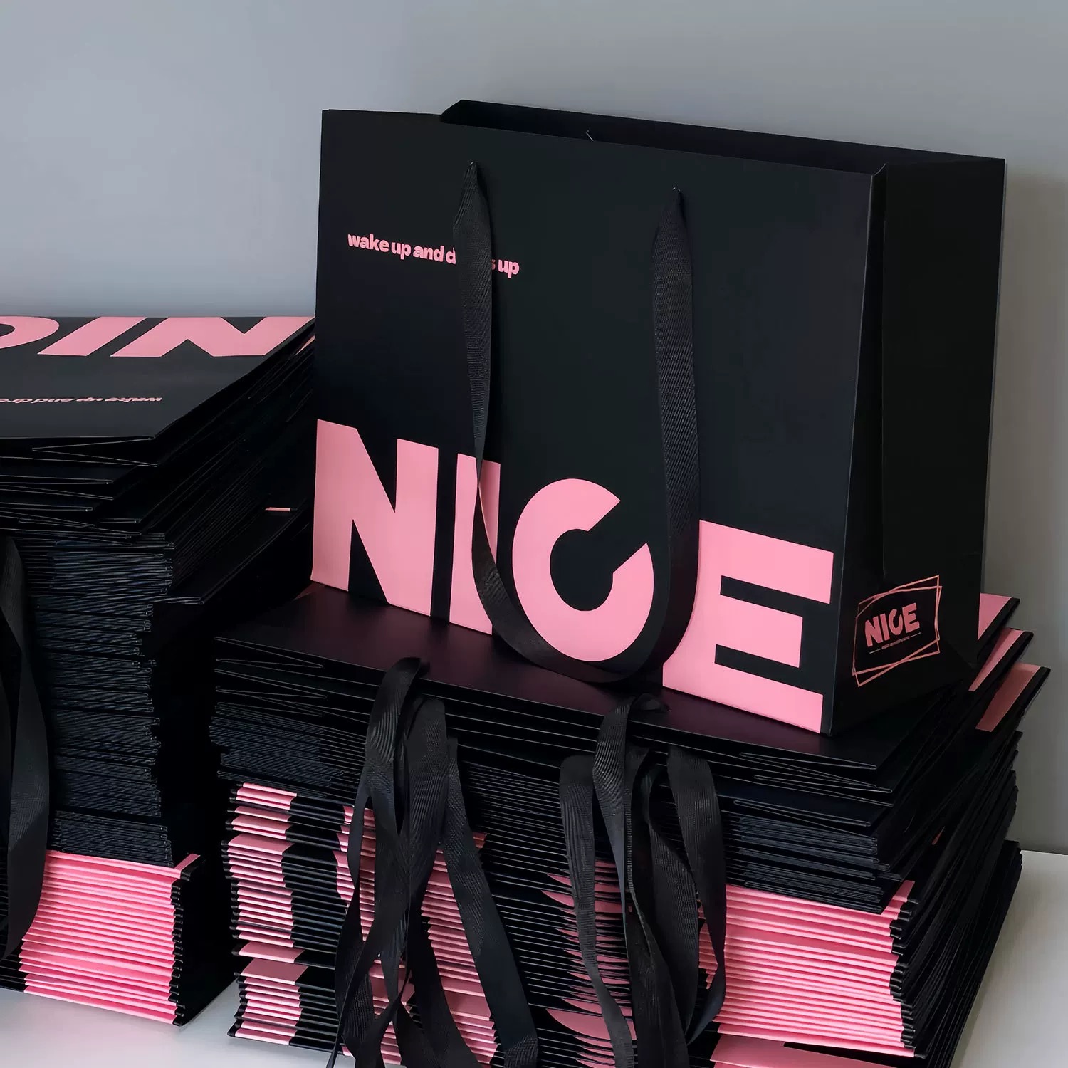 Custom black paper shopping bags gift bags packaging bags for clothing Custom black paper shopping bags gift bags packaging bags for clothing