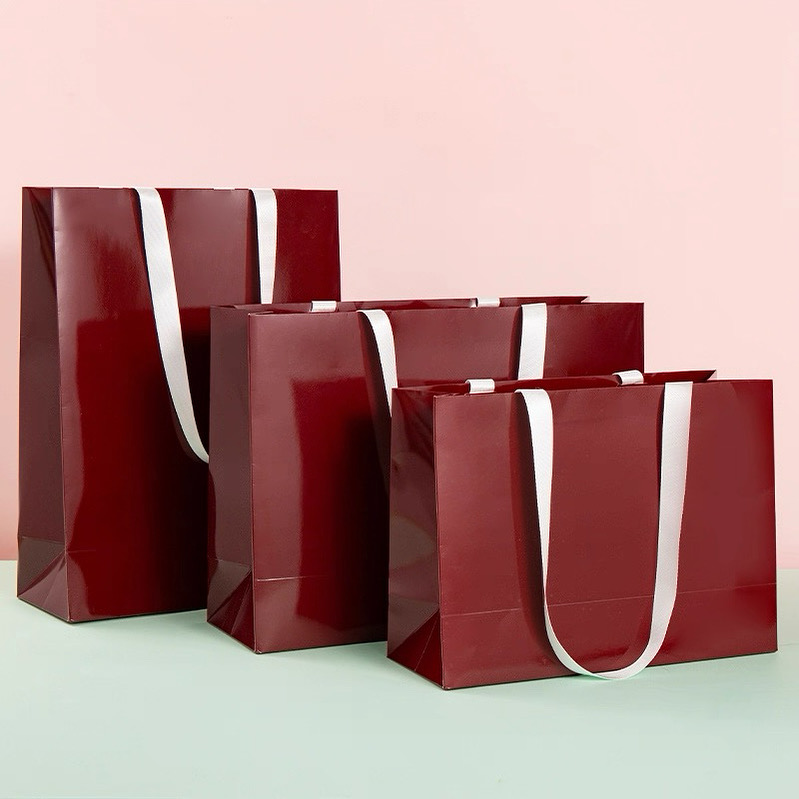 Custom High-end laser gradient paper bag thickened handbag packaging clothing store large gift shopping bag Custom High-end laser gradient paper bag thickened handbag packaging clothing store large gift shopping bag