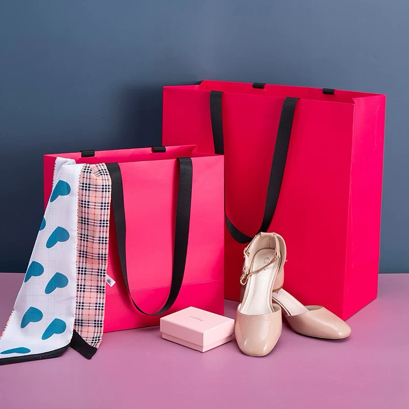 Custom Sweet rose red handbag clothing paper bag high-end gift bag shopping bag custom packaging bag Custom Sweet rose red handbag clothing paper bag high-end gift bag shopping bag custom packaging bag