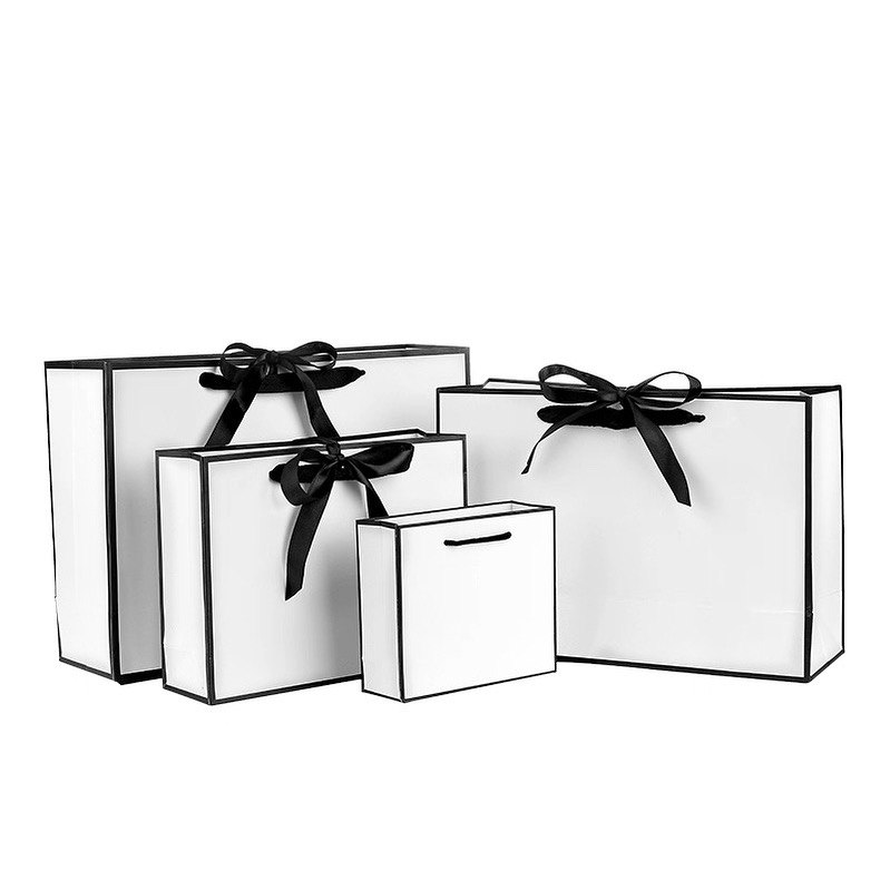 Custom white paper shopping bag for gift clothing boutique fashion beauty