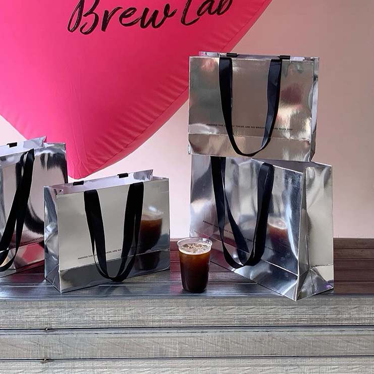 Customizable silver shoulder shopping paper bag for women's clothing, gift and beauty salon
