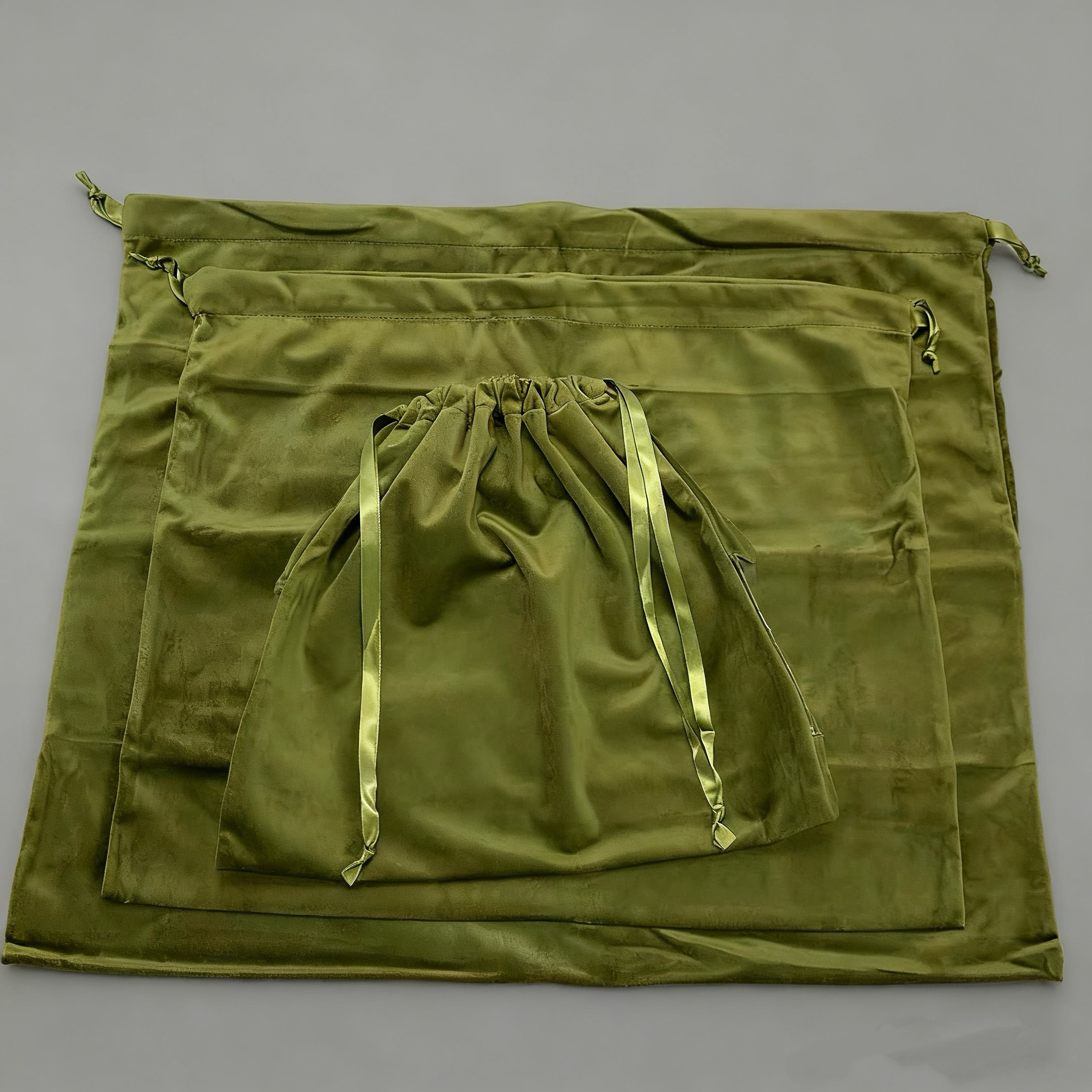 Custom green Storage velvet Bag Dust-proof and Moisture-proof Flannel Drawstring Bag Home Organizer Shoes Hair Dryer Drawstring Packaging Bag